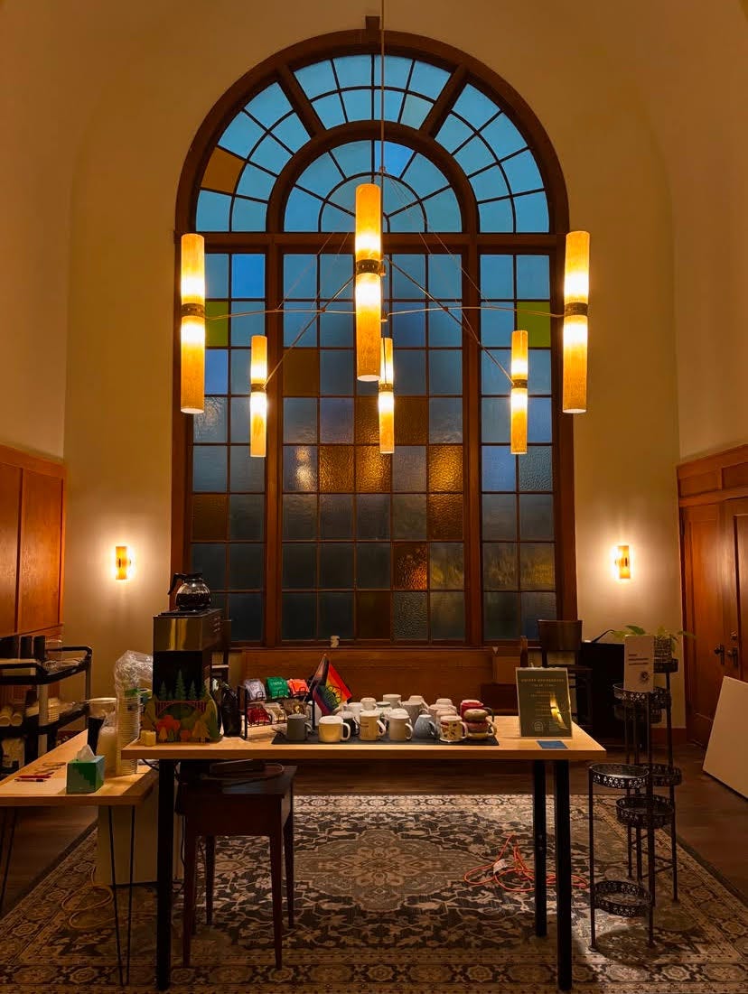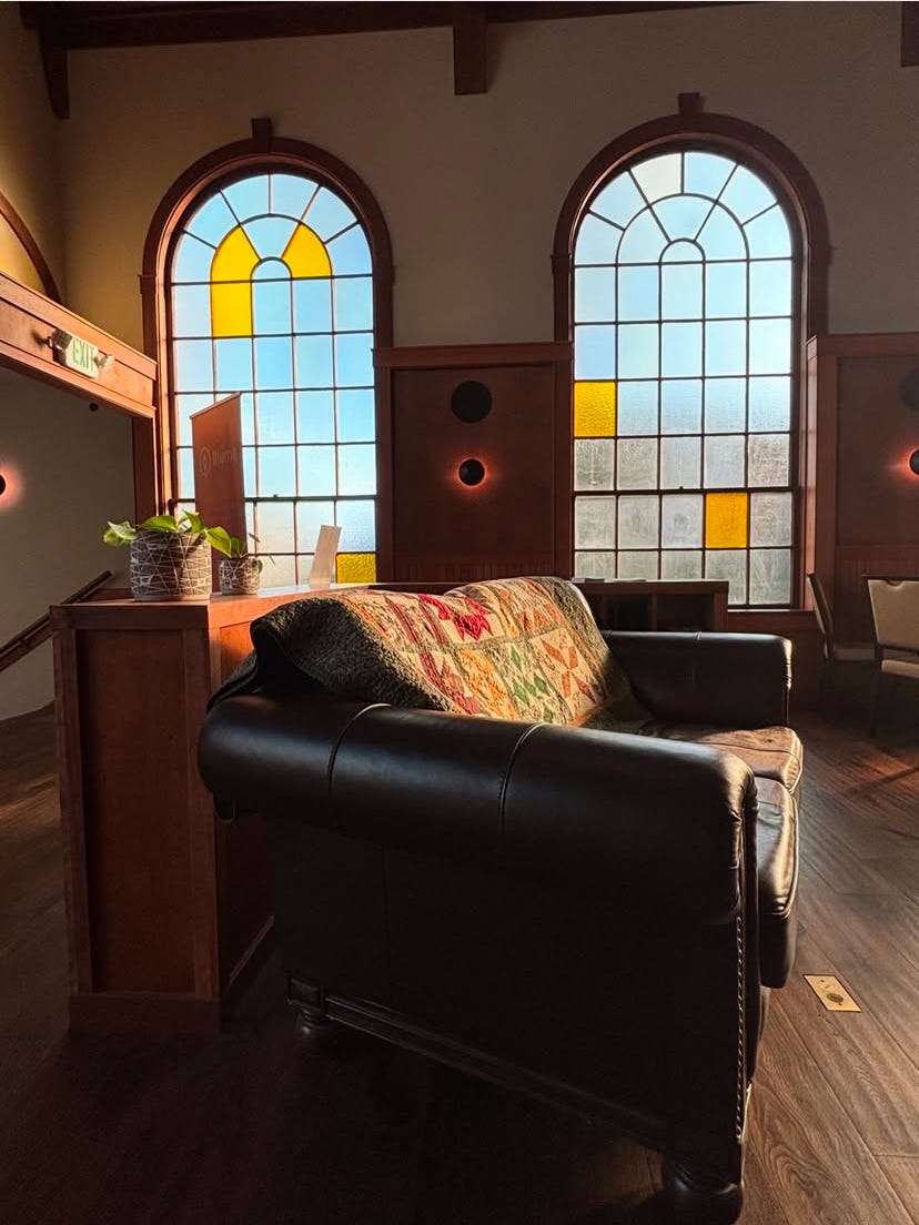 The following morning, I returned to the church. The same gentleman stood up when he saw me, along with the barista I had met weeks before. They invited me to join them on the couches in front of the big, stained-glass windows. We sat down with steaming mugs.